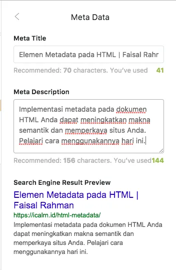 Berikut adalah hasil dari pengaturan metadata tersebut.